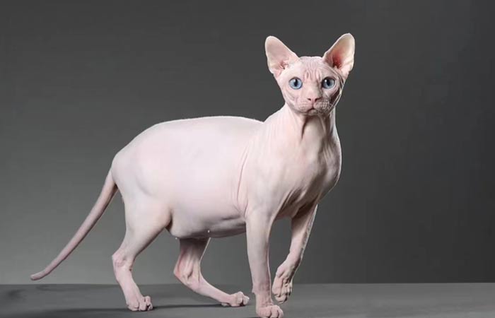 Hairless cats can have different body color expressions, mainly divided into blue (fancy) and white. The blue and white cats are also two directions that many breeders breed for, hoping to make the genes more and more stable through preferential selection.
